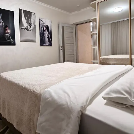 The 60 m² Apartament Lux New has a balcony, a living room, and a fully equipped kitchen, and comforts such as an air conditioner and a washing machine.
